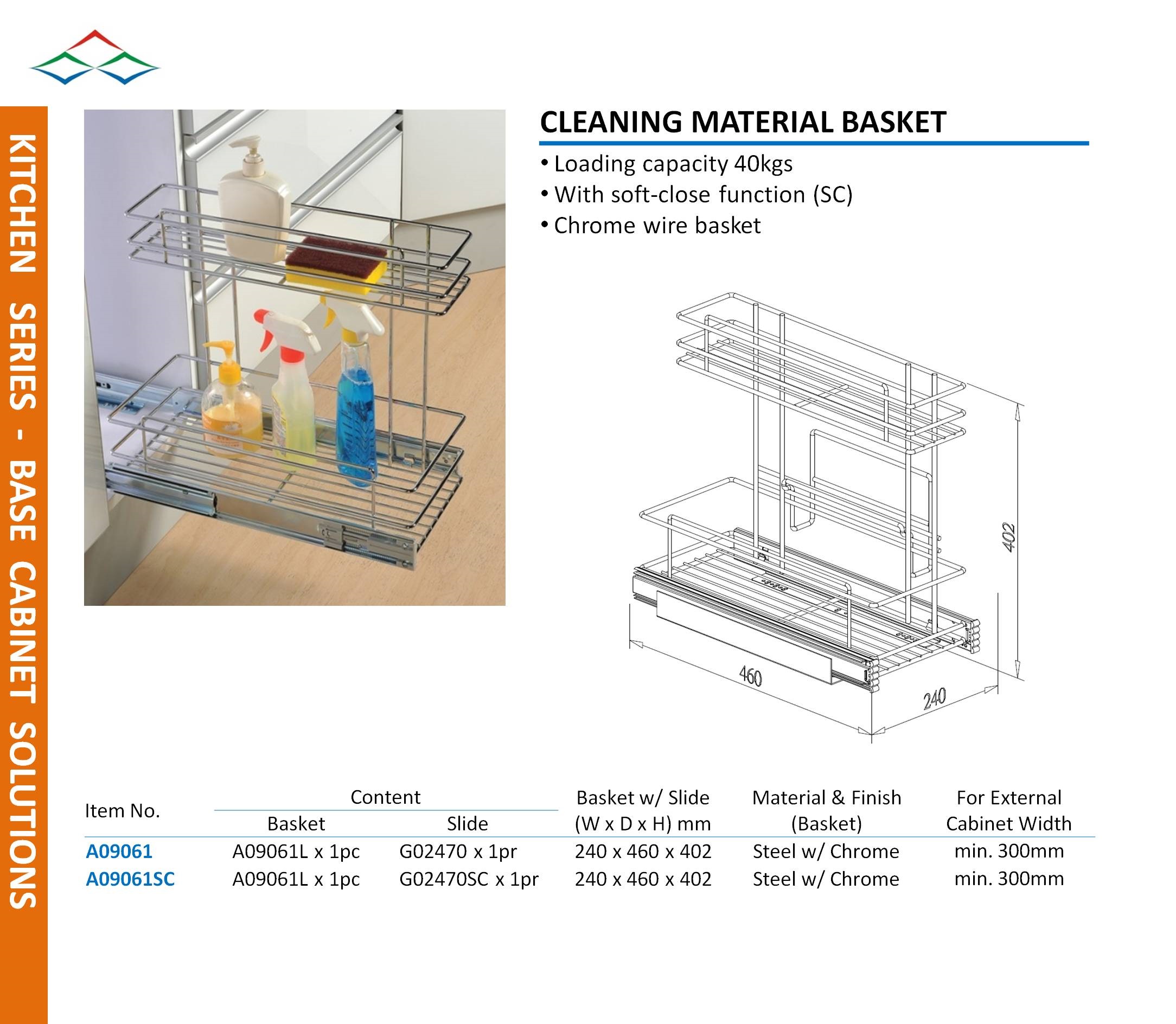 KitchenBase CabinetsCLEANING MATERIAL BASKET