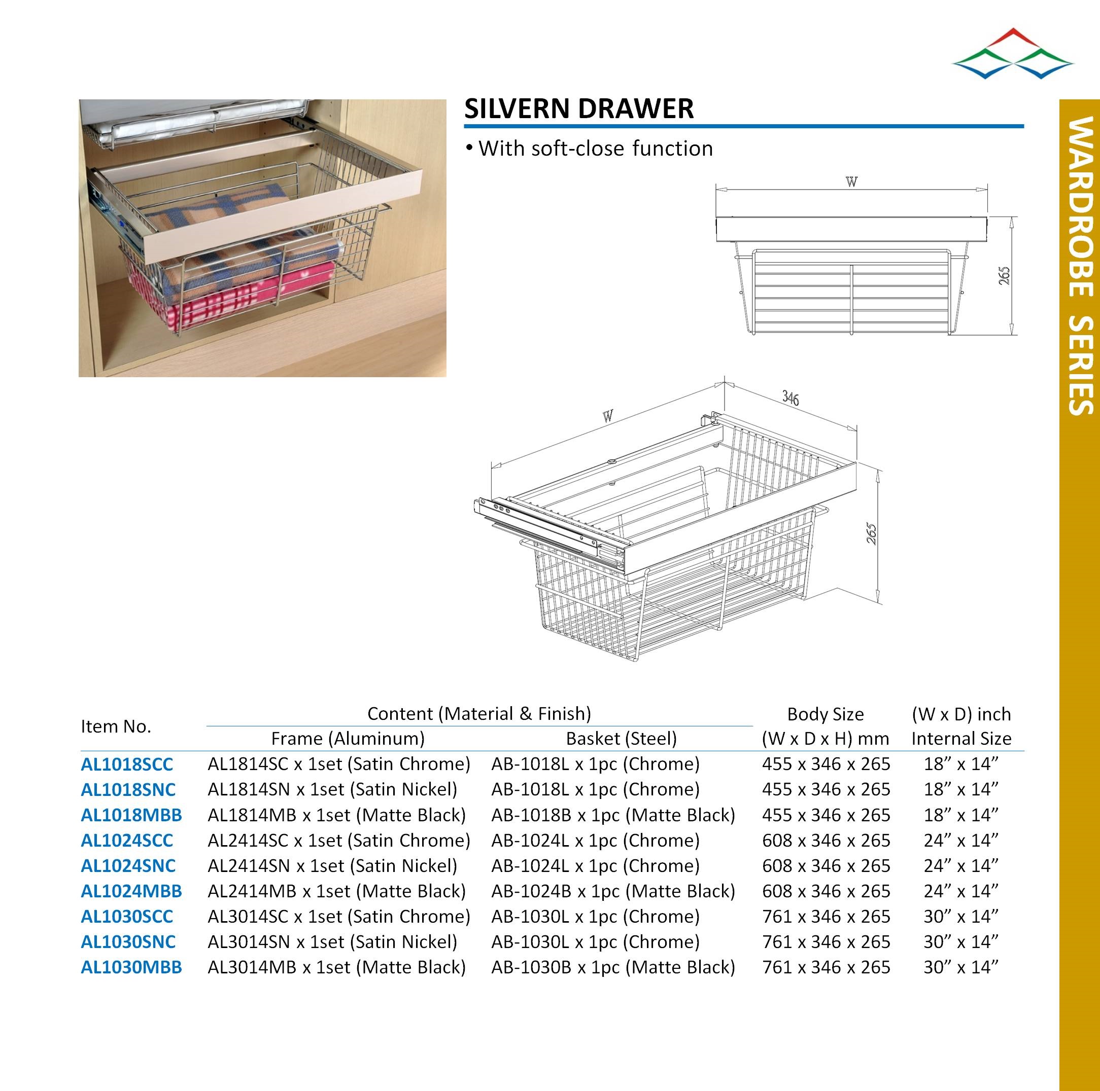 SILVERN DRAWER, inner 14"(d)